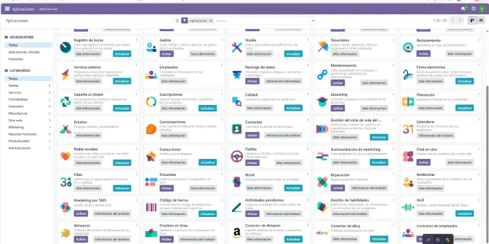 Aplicaciones por activar en la gestión: calidad, evaluaciones, encuestas, gestion de habilidades, gestion de cursos, eventois, reclutamiento, entre otras